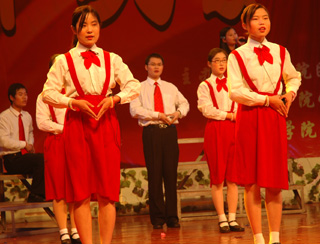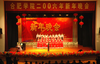 合肥学院2006年新年文艺晚会12月16日晚在院南校区礼堂成功上演,师生们用自己的歌声、笑声和掌声喜迎新年的到来。院领导赵良庆、蔡敬民、丁明,各系部负责人以及近1800名师生观看了演出。