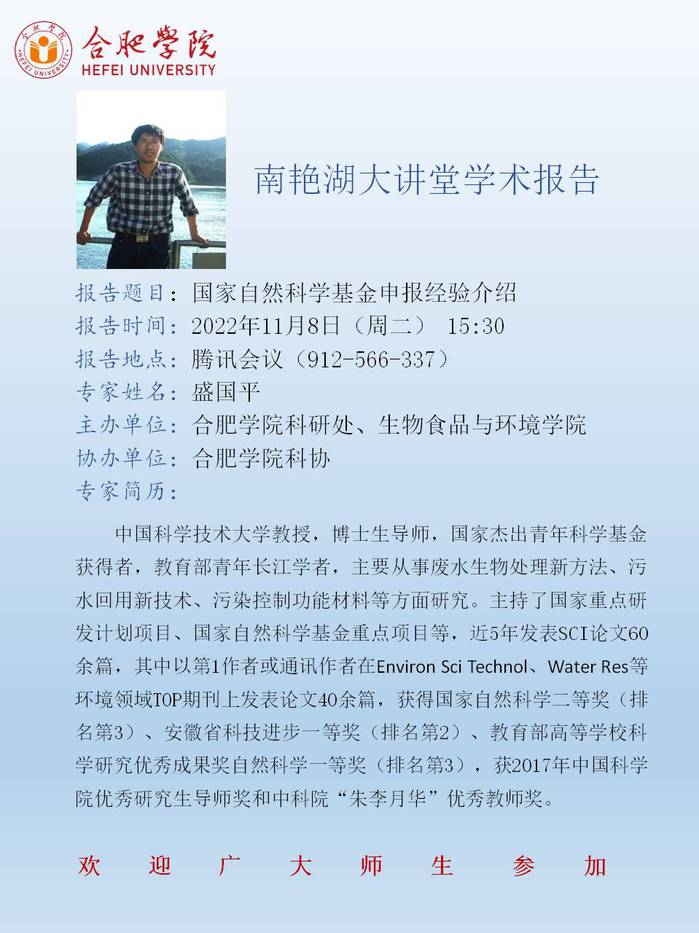 【讲座预告】国家自然科学基金申报经验介绍