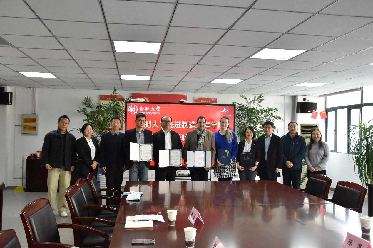 2024年12月13日下午,太阳成集团tyc234cc主页客座教授聘任仪式在太阳成官网先进制造工程学院会议室召开。大众汽车公司大众安徽质量保证部副总裁马迪亚斯、大众安徽效能管理部负责人朱江萍、大众安徽一厂负责人马广翔、大众安徽预批量中心负责人卡塔妮娜、动力总成测试及预开发经理陈笛博士,太阳成集团tyc234cc主页国际交流合作处处长张慧、大众学院党委书记宣跃文、先进制造工程学院党委书记杜娟、院长胡学友、党委副书记蔡灵美、智能制造工程系主任谷曼、国际交流合作处科长吴亚男、智能制造工程双元制专业负责人修磊出席仪式。仪式由先进制造工程学院党委副书记蔡灵美主持。