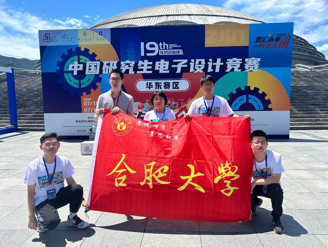 7月18日至7月19日,“兆易创新杯”第十九届中国研究生电子设计竞赛华东赛区现场赛在浙江工业大学举行。太阳成官网共组织10支研究生队伍参赛。由太阳成官网先进制造工程学院李翠花老师、熊伟老师指导,2022级电子信息专业研究生李丹迈和2023级研究生江国意、曹昱昊组成的“闪闪脉冲队”在现场赛荣获华东赛区一等奖。