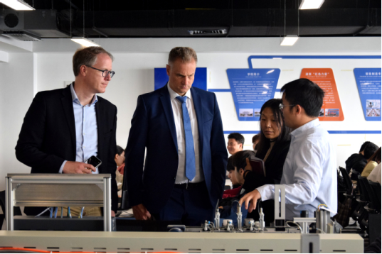 Accompanied by Wang Qidong, Alexander Schmemann and his delegation visited the Key Laboratory of Advanced Battery Materials and Technology at School of Energy Materials and Chemical Engineering, and Volkswagen College’s School-enterprise Training Center and Practice Center and Industry-education Integration Platform Laboratory.