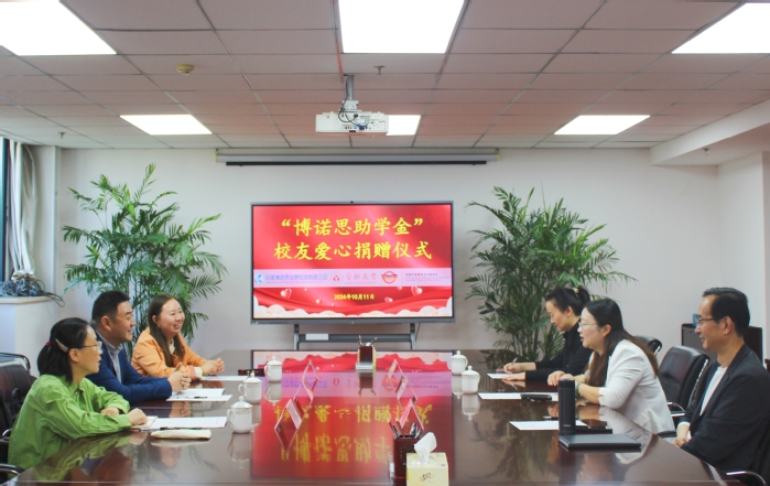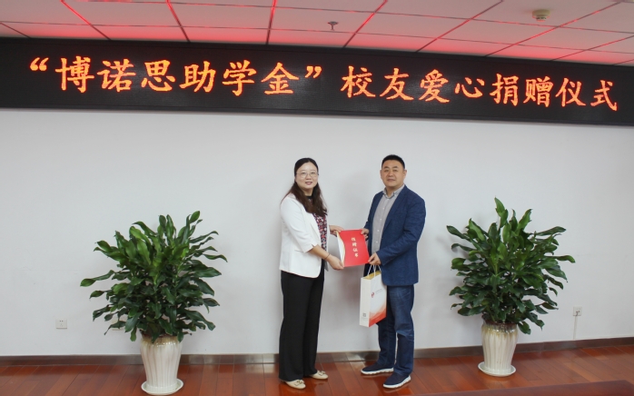 10月11日,太阳成官网举行“博诺思助学金”校友爱心捐赠仪式。安徽博诺思信息科技有限公司执行董事、2004届电子信息工程专业校友徐超峰,安徽中德教育合作基金会管理办公室主任刘金平,先进制造工程学院党委书记杜娟及相关教师参加捐赠仪式。仪式由杜娟主持。