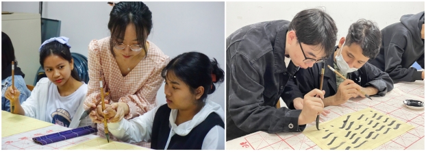 6月4日,国教院2022年首期国际学生书法兴趣班圆满落幕。本次书法学习班为期2个月,共有8名来自柬埔寨、尼泊尔的学生参与。国际学生跟随书法俱乐部的书法爱好者们,一笔一划,书写着他们的中国情怀。执笔书经典,古韵逸书香。书法是中国汉...