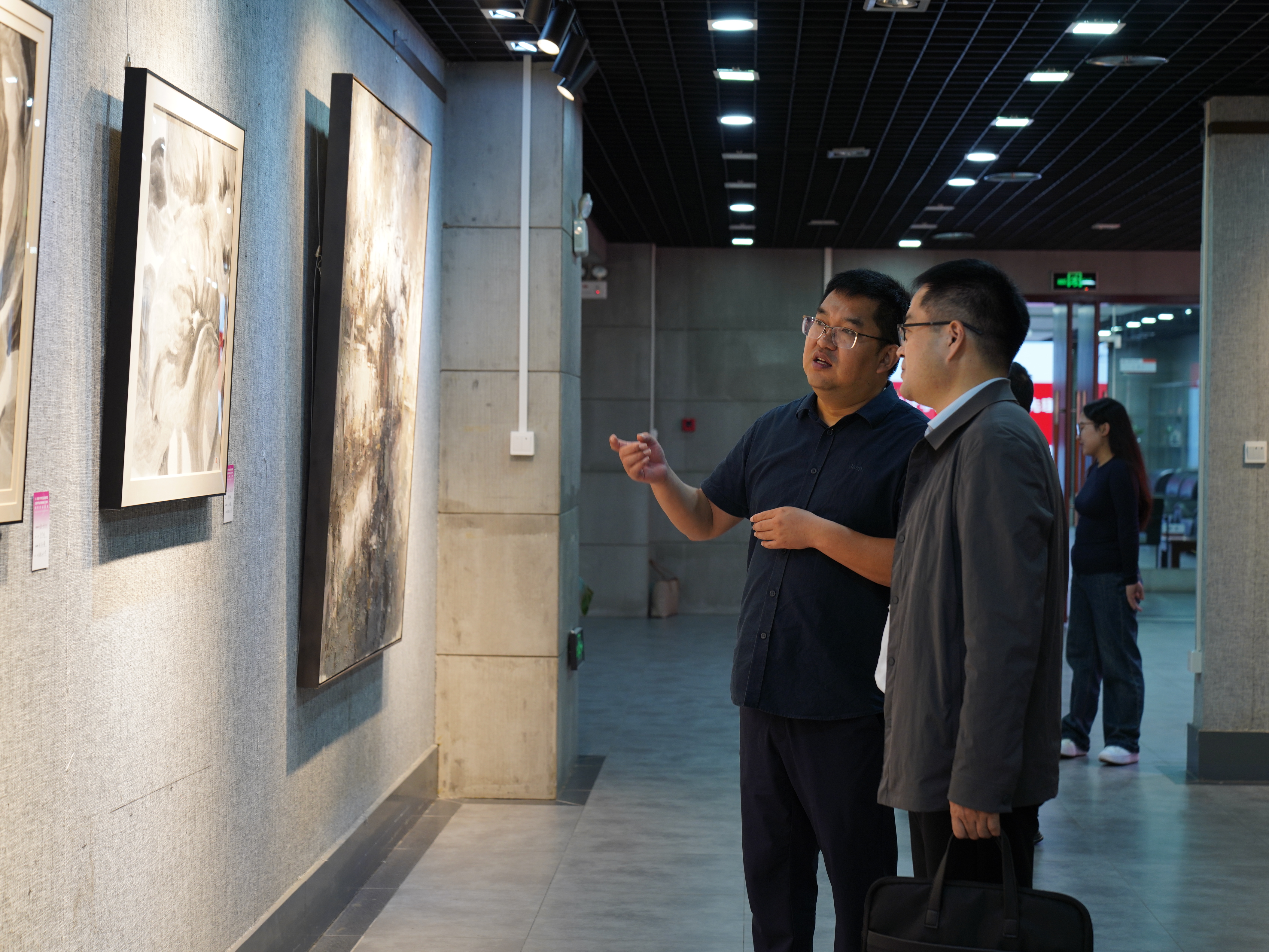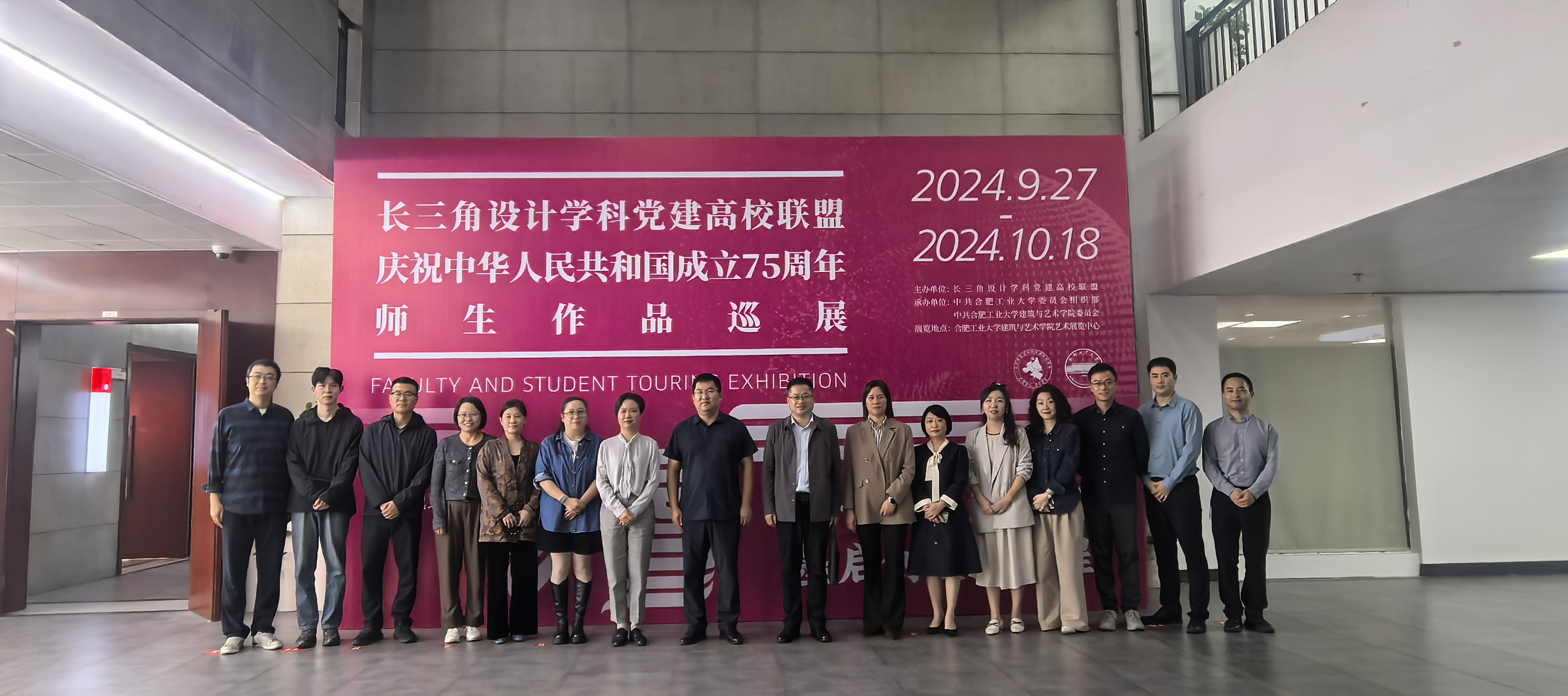 合肥工业大学大学建筑与艺术学院党委书记孙建海首先对设计学院党委一行的到来表示欢迎并带领大家参观了“七十五载风华颂,墨启创设新征程”——庆祝新中国成立75周年师生作品巡展。展览旨在通过艺术的方式全面展示建国75年以来我们伟大的党和国家所取得的丰功伟绩,讴歌新时代、奋进新征程。随后,孙建海书记还带领大家参观了徽派建筑文化展示中心和校美育基地。