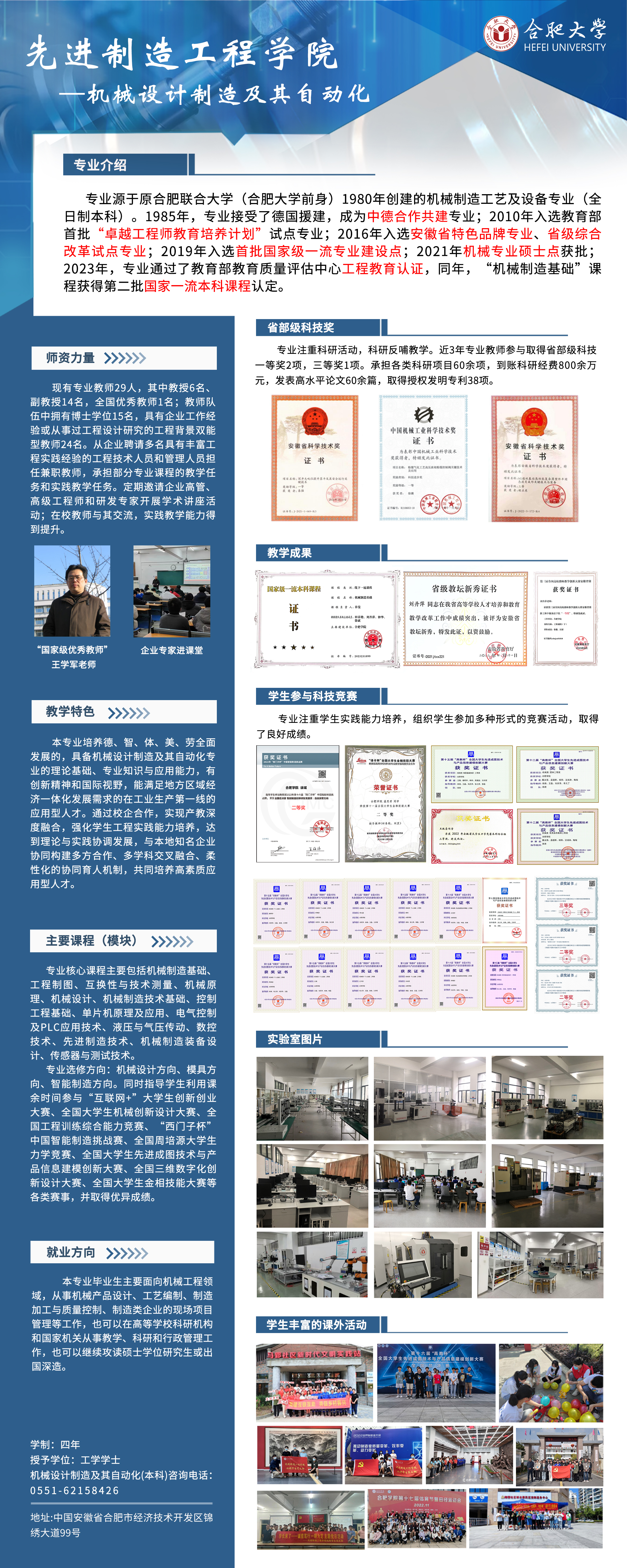 机械设计制造及其自动化(本科) 咨询电话:0551-62158424